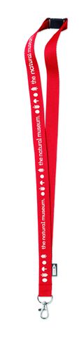 Lanyard aus RPET mit Metallkarabiner und Panikverschluss.