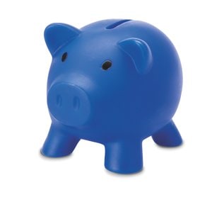 Pack mit 10 GiftRetail MO8132 - Blau - SOFTCO Sparschwein aus PVC mit ABS-Verschluss am Boden