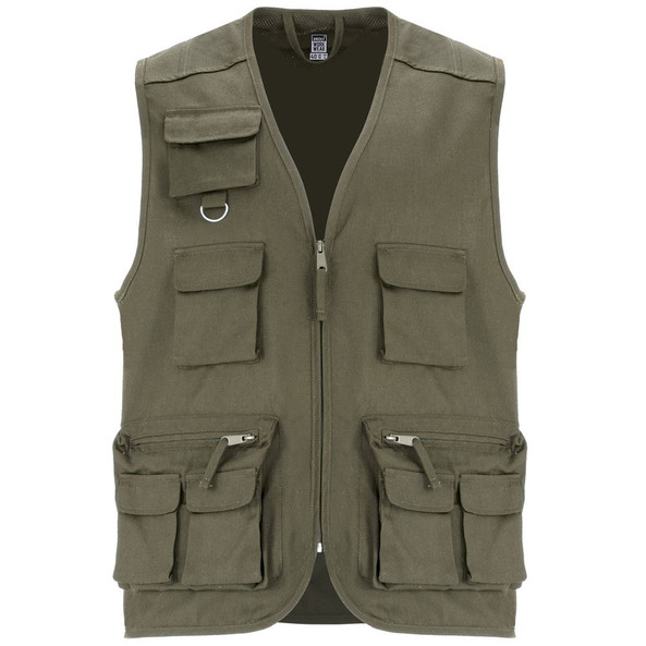 4. Zwei Seitentaschen mit Reißverschluss und Zugband, sowie zwei überlappende Taschen mit Patte und Klettverschluss.