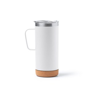 Stamina TZ1368 - Weiß - BEYRON Doppelwandiger Metallbecher mit Korkboden und transparentem Sicherheitsdeckel