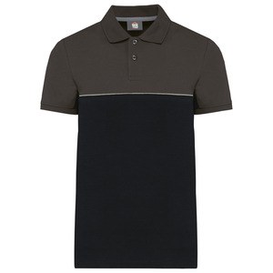Kontrastfarbene Paspel zwischen den zweifarbigen Elementen des Kleidungsstücks (Rumpf und Ärmel auf Vorderseite und Rücken).